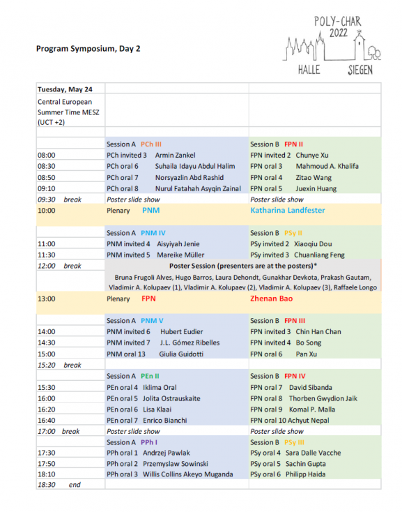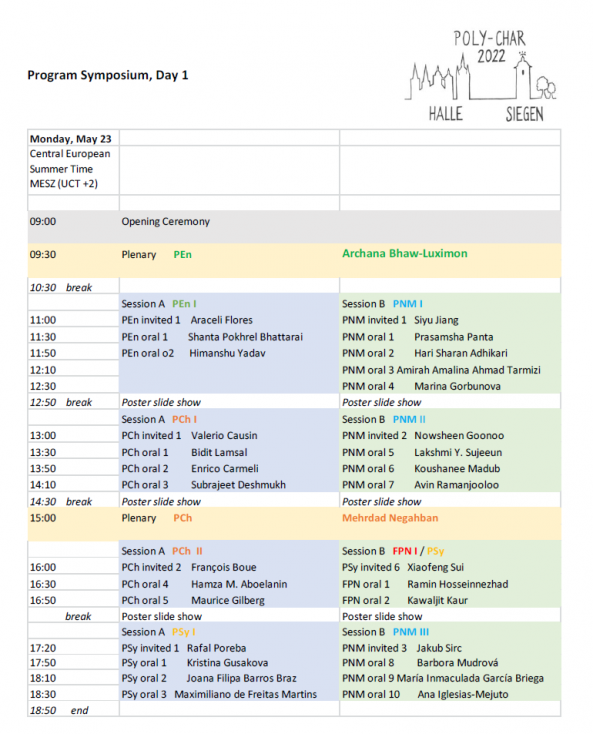 Papers presented at POLY-CHAR [HALLE | SIEGEN] 2022 can be submitted for publication (following rigorous peer review) in a Special issue of Macromolecular Symposia (Macromolecular Symposia - Wiley Online Library) devoted to the conference. This issue is edited by Dr. Sven Henning, Dr. Ralf Lach and Prof. Dr. Holger Schönherr.