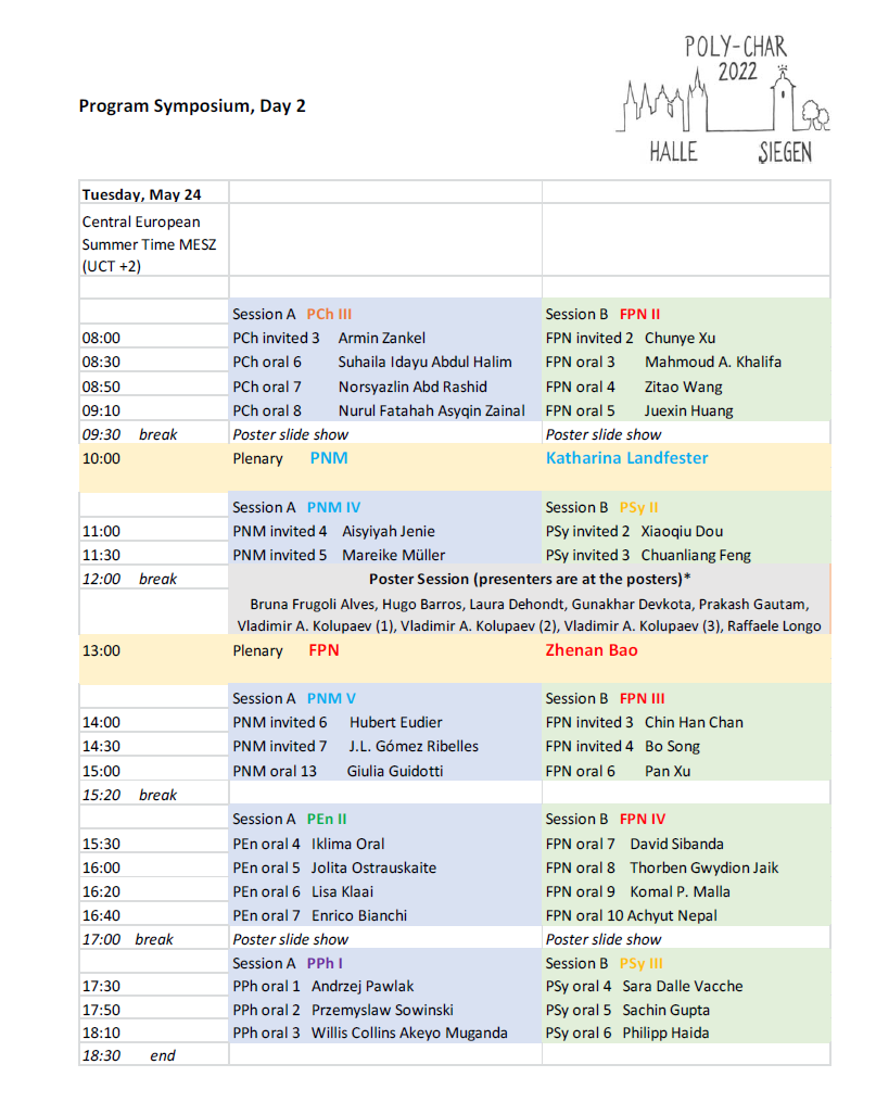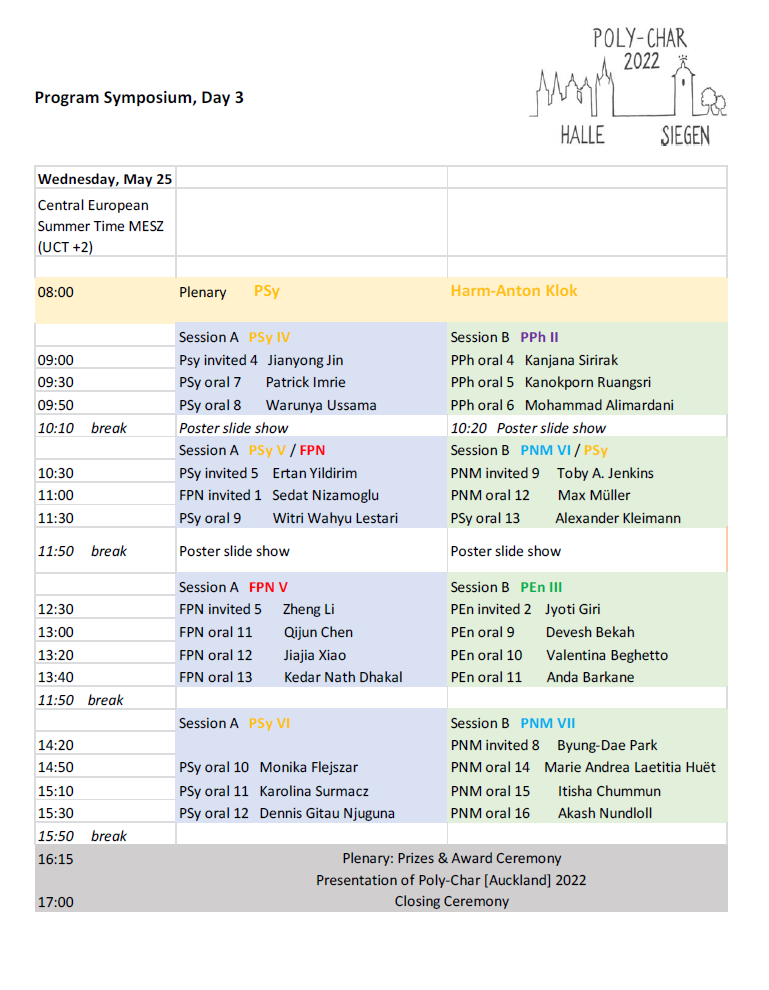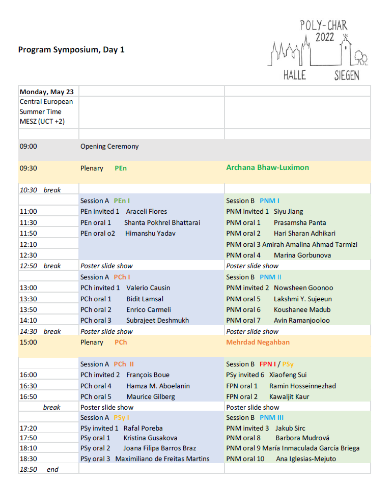 In case you meet difficulties, please contact us: emergency@poly-char2022.org. This address will be checked on the days of the conference, i.e. May 22 - 25.